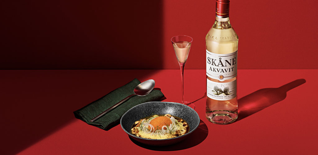 Vinnaren av Årets Kock 2023, Desirée Jaks, har i samarbete med Skåne Akvavit skapat en rätt som förenar tradition och innovation – Kalixlöjrom med potatis i smak av Janssons frestelse, hasselnötter & akvavitpicklad lök. Rätten är perfekt för julens festligheter och serveras bäst med ett glas Skåne Akvavit 38 %, som finns tillgänglig på Systembolaget.