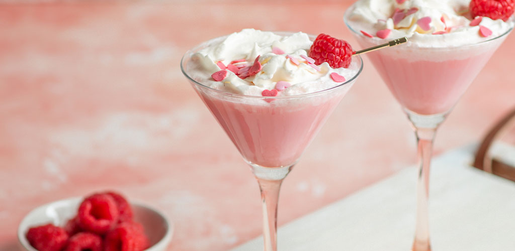 Om middagen inte varit alltför bastant finns det kanske plats för en läcker chokladdessert. Det flytande alternativet blir drinken Fudgy Chokladmousse som garanterat inte lämnar någon hungrig. Istället för på sorbet? Gör en rejäl laddning Frozen Raspberry i mixer så att det räcker till alla gäster. Duka med frysta cocktailglas och häll upp vid bordet. På så sätt håller sig drinken ”slushig” och snygg tills det är dags att njuta. Ställ fram hallon och mynta för gästerna att ta för sig själva, eller förbered på cocktailpinnar.