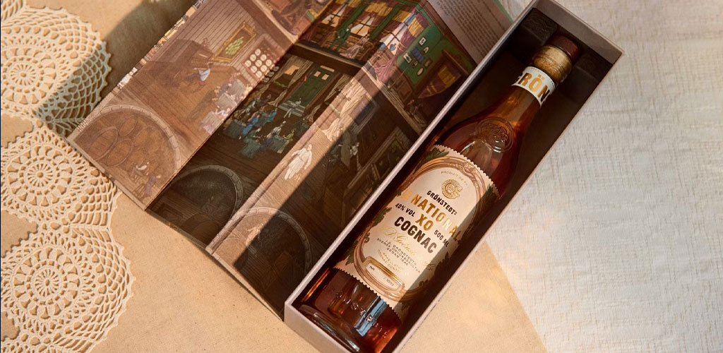Designmotivet för 2024 bjuder in betraktaren till sagan om Grönstedts, till slutet av 1800-talet och ett myllrande Gamla Stan. Där tappade Johan Daniel Grönstedt sin första cognac och byggde sitt imperium. Flaskan illustrerar platsen kring restaurang Stiernan, med kajen där cognacen togs emot från ett fjärran land, vägen till dess lagring och sedan buteljering. Tittar man lite närmre på illustrationen finns gömda element och budskap för den uppmärksamme att upptäcka.