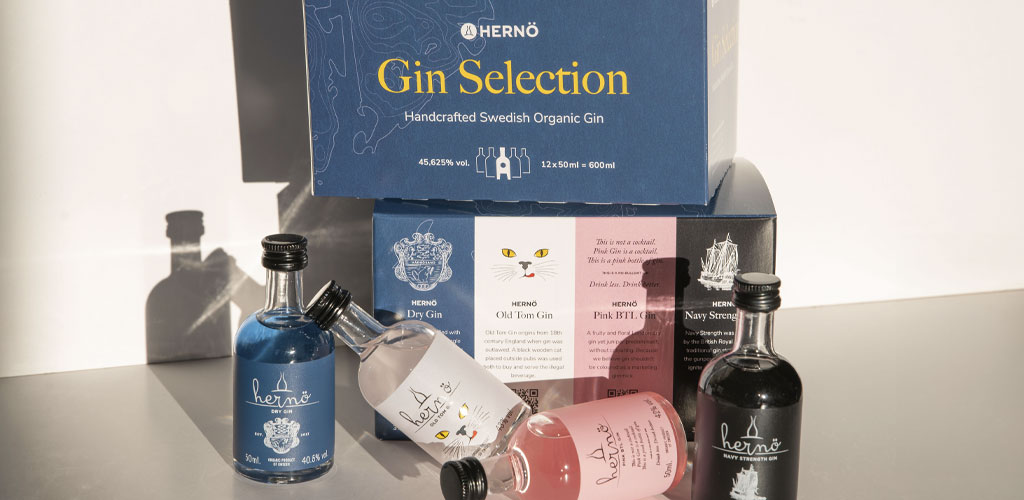 Hernö Gin introducerar nu sin exklusiva Hernö Gin Selection – en efterlängtad samling av destilleriets mest älskade ginsorter i ett lyxigt miniformat. Boxen innehåller tolv flaskor á 50 ml, vilket ger ginentusiaster en möjlighet att dyka ner i Hernös rika smakspektrum. Med en begränsad upplaga lanseras denna förpackning genom Systembolagets beställningssortiment från och med den 12 november, klockan 10:00.