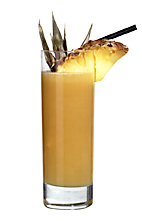 Garneras med en skiva miniananas, en skiva lime och ett rött bär.