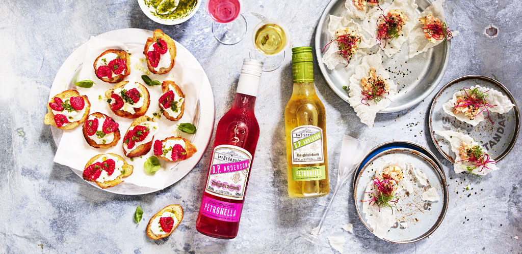 Under de senaste åren har utvecklingen kring lågalkoholprodukter gått snabbt framåt och idag behövs inte full alkoholstyrka för att uppnå önskad smak. Det gäller även för snaps där O.P. Anderson Petronella Äpple & Kummin bröt ny mark vid lanseringen för över tio år sedan. Sedan förra året finns även O.P. Anderson Petronella Hallon med smak av hallon tillsammans med klassiska akvavitkryddor. De båda snapsarna passar perfekt till sommarens luncher och ligger på endast 30 respektive 25 procents alkoholhalt.