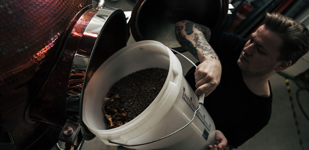Erik Hasselgärde har varit på destilleriet sedan 2018 och berättar att pandemin gjorde Stockholms Bränneri rikskänt.